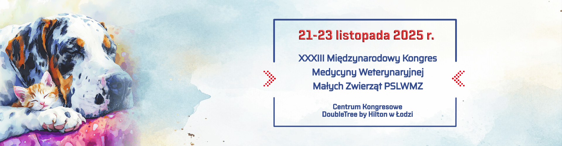 W imieniu Komitetu Organizacyjnego mam zaszczyt zaprosić Państwa do udziału w XXXIII Międzynarodowym Kongresie Medycyny Weterynaryjnej Małych Zwierząt PSLWMZ, który tradycyjnie organizujemy w hotelu DoubleTree by Hilton w Łodzi w dniach 21-23 listopada 2025 roku.